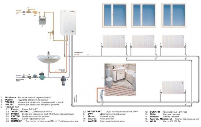 Все системы отопления выполнены по одной схеме — котел — подающие трубы — приборы — обратные трубы — котел. Он перематывается. Давление и циркуляция теплоносителя в системах центрального отопления поддерживаются насосами. В частных домах с открытой автономной системой отопления котел обеспечивает давление и циркуляцию при обогреве. В домах система отопления автономная, закрытая, теплоноситель всегда под давлением.