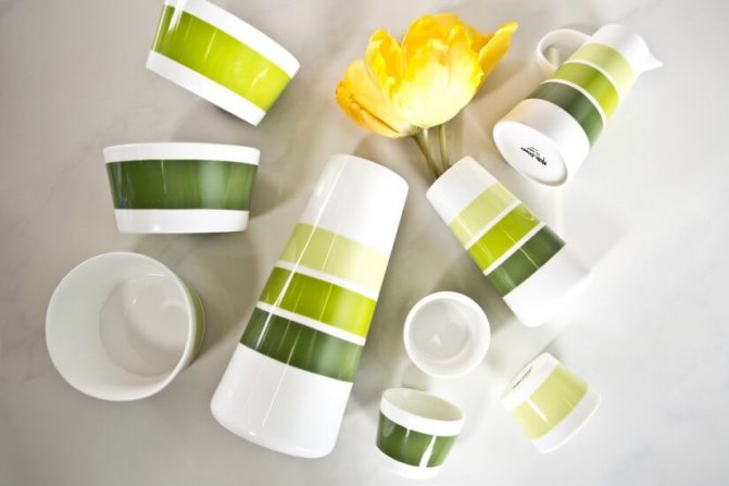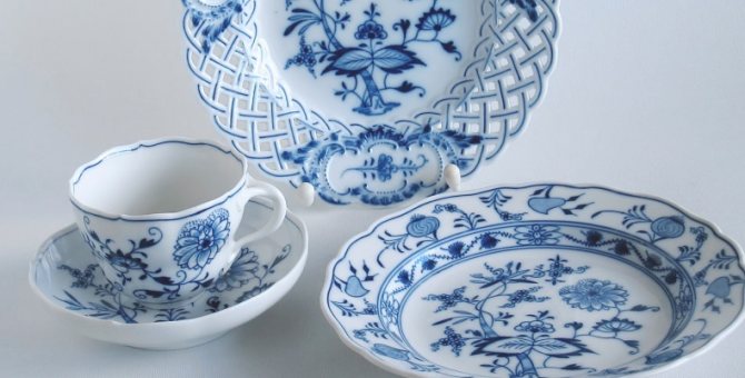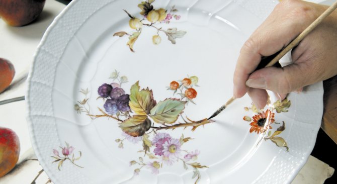 - Фарфоровые и майоликовые тарелки и чашки без декоративных мотивов.