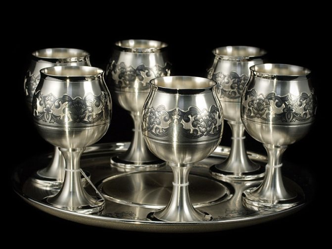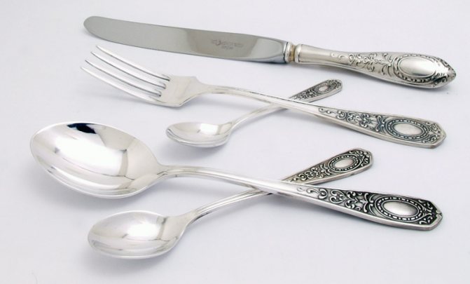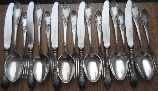 - Столовые приборы из мельхиора и стали.