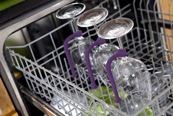 Совет! Во многих посудомоечных машинах есть специальные приспособления для фиксации посуды, которые защищают ее от движения, падений или ударов (на фото). Не игнорируйте эти полезные рычаги и зажимы.
