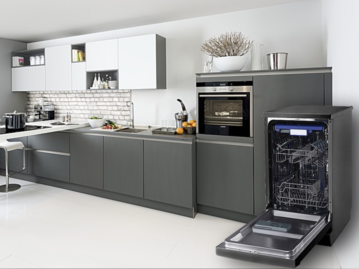 Узкая посудомоечная машина имеет нестандартную ширину — 50 см. Опять же, она подходит для маленькой кухни, так как ее важная задача — экономия места.