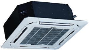 Кассетная — модель, относящаяся к полупромышленным кондиционерам. Такое оборудование подходит для установки в помещениях с большой площадью, в том числе в заведениях общепита, магазинах. Это надежная сплит-система кентацу с потолочным креплением. Как и другие потолочные системы, установка осуществляется с помощью специальных элементов, закрепленных на натяжном потолке. Пульт дистанционного управления кондиционером kentatsu необходим для включения устройства, управления функциями и настройки параметров.