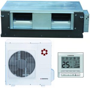 Канальные кондиционеры Kentatsu — системы Multisplit состоят из нескольких блоков: внутреннего и внешнего. Воздух циркулирует по вентиляционным каналам, одновременно попадая в несколько точек. Это могут быть разные комнаты или несколько зон, расположенных в одной комнате. Канальные кондиционеры тоже относятся к разряду полупроизводственного оборудования. Чаще всего их устанавливают в коммерческих помещениях, торговых залах, аудиториях, ресторанах или кафе. Схемы монтажа канальных и кассетных устройств имеют много общего. И в первом, и во втором случае сплит-систему монтируют в зоне потолка. При установке нескольких устройств может потребоваться соответствующий привод.