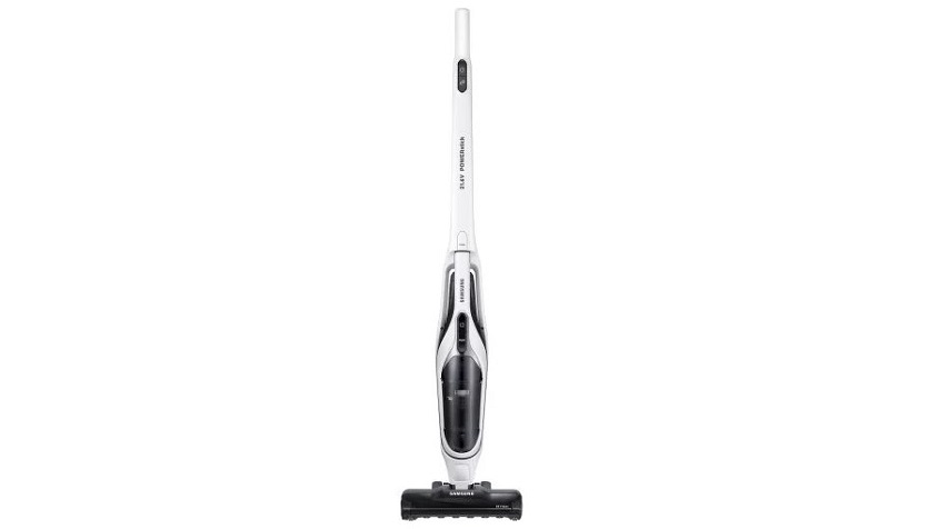 VS60K6030 — единственная вертикальная модель в ТОПе пылесосов с циклонным фильтром. Цена на это решение начинается от 13 тысяч, что с учетом заявленных характеристик можно охарактеризовать как отличное предложение. Емкости встроенного аккумулятора вертикального пылесоса Samsung Li-Ion хватает на полчаса работы при минимальной нагрузке. Аккумулятор заряжается до 100% всего за 3 часа. Потребляемая мощность и мощность всасывания лучшего пылесоса Samsung, по словам владельцев, составляют 170 и 30 Вт соответственно. Отходы после очистки собираются в контейнер емкостью 250 мл. Многие покупатели оценят способность VS60K6030 трансформироваться в версию с ручным управлением, что упрощает чистку мебели и салона автомобиля.