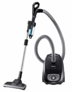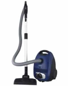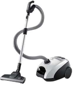 Надежный пылесос для сухой уборки VCJG24JV открывает обзор. Этот агрегат может похвастаться хорошей мощностью всасывания 440 Вт (потребляемая мощность 2,4 кВт), шнуром питания длиной 7 м и фильтром HEPA 13. Уровень шума пылесоса с мешком для пыли составляет 75 дБ. Это не самый низкий показатель, но вполне комфортный. В комплект поставки Samsung VCJG24JV входят турбощетка, щетка для пола / ковра и комбинированная щетка для расщелин и мебели. Среди дополнительных возможностей недорогого пылесоса Samsung можно отметить только индикатор заполнения пылесборника. Однако при ценнике в 5600 рублей мало кто предлагает что-то получше.