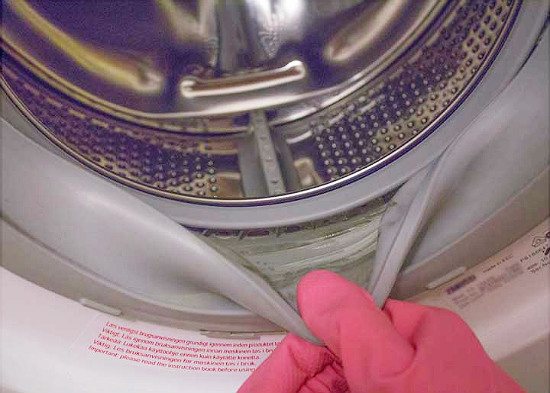 Если манжета была снята для профилактической чистки, ее тщательно промывают с использованием дезинфицирующих средств. Сама щель, появившаяся после выемки, также освобождается, каждая выемка барабана предварительно закрывается резинкой. Как правило, в таких местах скапливаются корки, которые можно удалить с помощью моющих средств.