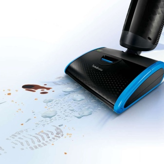 - пылесос распыляет воду на поверхность через специальную насадку;