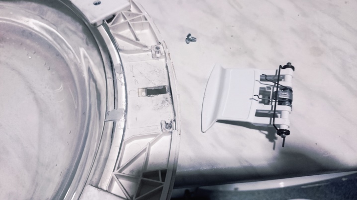 Одна из самых частых причин заклинивания дверцы стиральной машины — повреждение одного из механизмов. Чаще всего ломается ручка открытия / закрытия люка. Не всегда это происходит из-за чрезмерных физических нагрузок при открывании двери. Причиной тому может быть элементарный износ оборудования. В этом случае вам просто нужно снять дверь с петель и попытаться ее разобрать.