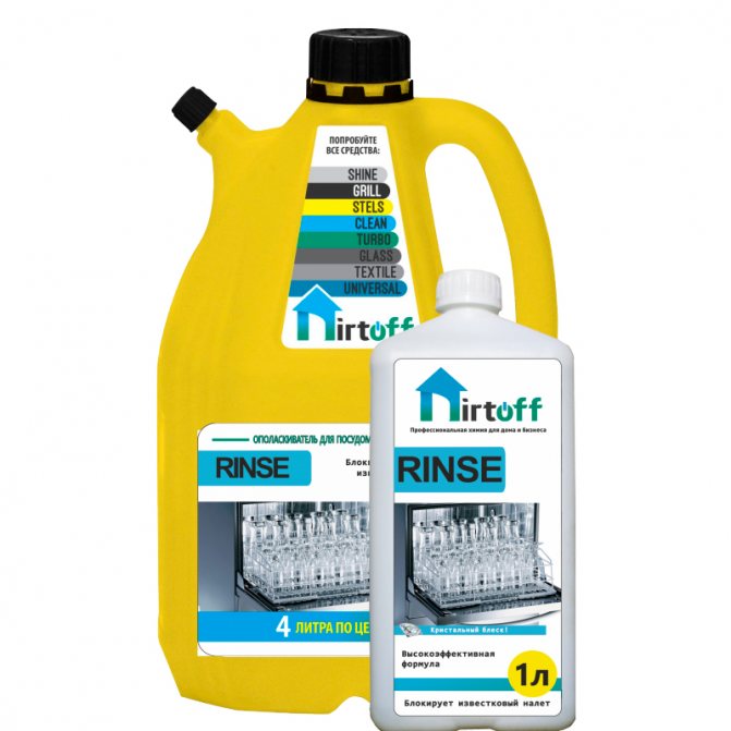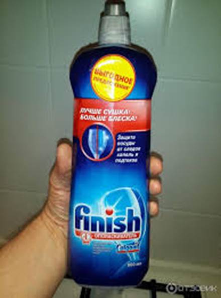 - Средство хорошо выполняет функции ополаскивателя: удаляет остатки химических продуктов, устраняет капли на посуде, препятствует образованию отложений, защищает от образования отложений.