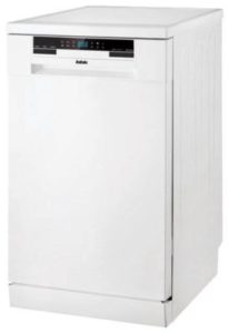 Оценка узких посудомоечных машин продолжается с Hansa ZWM 416 WH. Данная модель относится к группе посудомоечных машин с максимальной защитой от протечек. В его основе лежит система Aqua Stop, которая автоматически перекрывает подачу воды и останавливает ее поток, если подающий шланг поврежден. То же самое происходит, когда в чашке скапливается вода. Следовательно, автомат можно включить, даже если за ним нет возможности постоянно следить. О завершении работ будет сигнализировать звуковой сигнал. За один цикл вы можете загрузить до 9 комплектов посуды. Но вы можете использовать режим половинной загрузки. С его помощью заполняется только одна корзина. Вы также можете разложить тарелки по частям в обеих корзинах, наполовину загруженными. Когда эта функция активирована, два разбрызгивателя работают по очереди, обеспечивая высокое качество стирки с экономией энергии и воды.