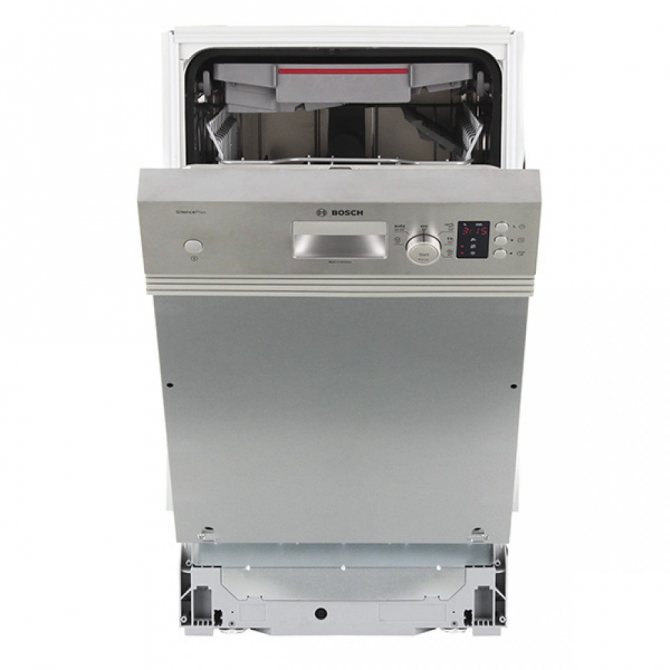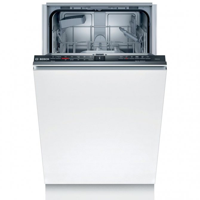 Помимо модели с габаритами 60 см, есть еще и посудомоечная машина на 45 см: она самая компактная, но при этом выполняет те же функции. Так что если у вас небольшая кухня или вы не планируете мыть большое количество посуды, модель Bosch Super Silence шириной 45 см — это то, что вам нужно.
