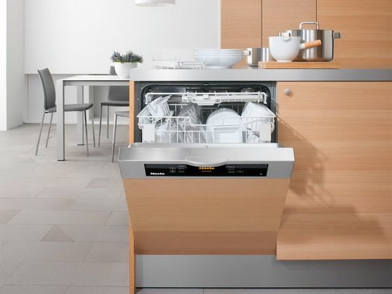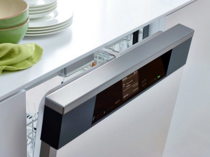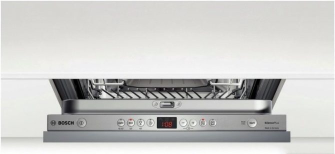 Встраиваемые посудомоечные машины отличаются тем, что их панель управления полностью скрыта вместе с основной частью. В этом тоже есть свои плюсы, ведь техника не выделяется из общего интерьера кухни. Он скрыт от глаз и от маленьких детей, которые могут дотянуться до панели рукой.
