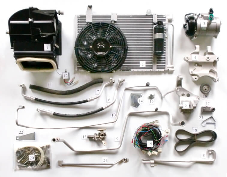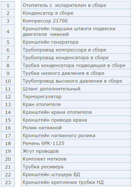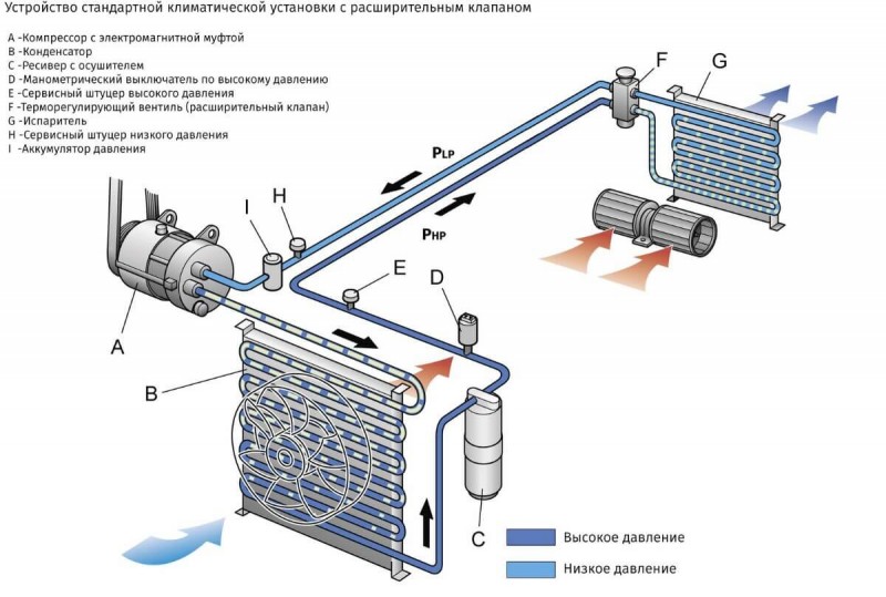 Основные компоненты автомобильного кондиционера: