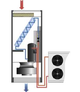 По принципу работы прецизионный кондиционер мало чем отличается от других видов климатической техники. Рабочий цикл агрегата обычно выглядит так: