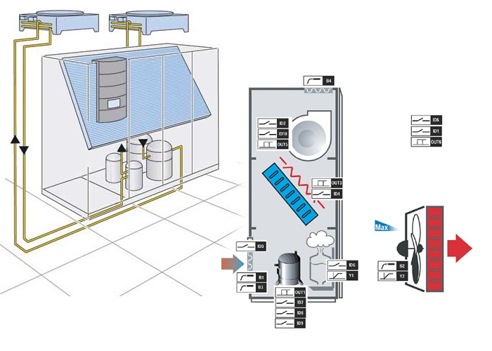 На кондиционерах этого типа устанавливается резервная система охлаждения для быстрого запуска резервного блока в случае выхода из строя основного блока охлаждения. Это необходимо для постоянного поддержания температурных показателей в помещениях, где особенно важны перепады температуры и влажности.