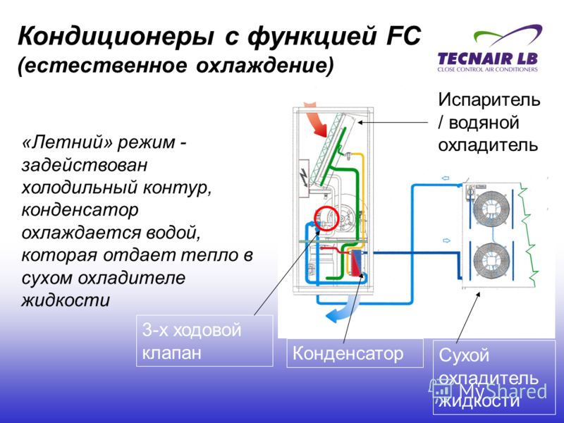 Принцип работы прецизионного кондиционера с резервной системой охлаждения
