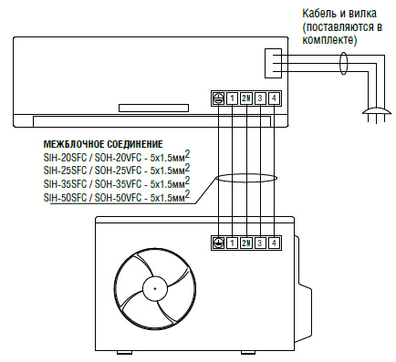 Схемы подключения бытовых кондиционеров имеют небольшие отличия. Любой производитель машин этого типа также заинтересован в конкуренции по удобству (простоте) электрического подключения.