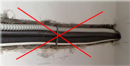 - Электропроводка в доме устраивается кабелем сечением не менее 2,5 ммкв, для современных сплит-систем желательно 4 ммкв.
