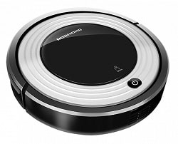 Продуманный пылесос, предназначенный для сухой и влажной уборки помещений. Корпус устройства округлой формы, выполнен из прочного пластика. Дизайн достаточно простой и универсальный, поэтому изделие впишется в любой интерьер. Высота корпуса 8 см, благодаря чему робот собирает мусор даже под невысокой мебелью. Эффективно собирает пыль, грязь, шерсть и шерсть домашних животных. Пылесос выполняет влажную уборку гладких полов.