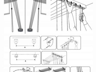 Подъем осуществляется с помощью троса, прикрепленного к гребне на стене. Монтаж нужно проводить так, чтобы белье не касалось пола.