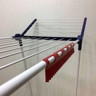 Достаточно распространенный вид современных сушилок для небольших балконов. Мобильность устройства — его главное преимущество. Сушилку можно открыть во время сушки белья, а затем сложить в кладовку или шкаф.