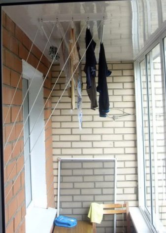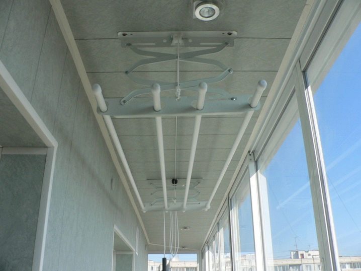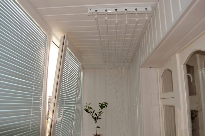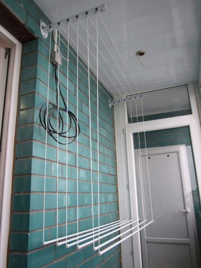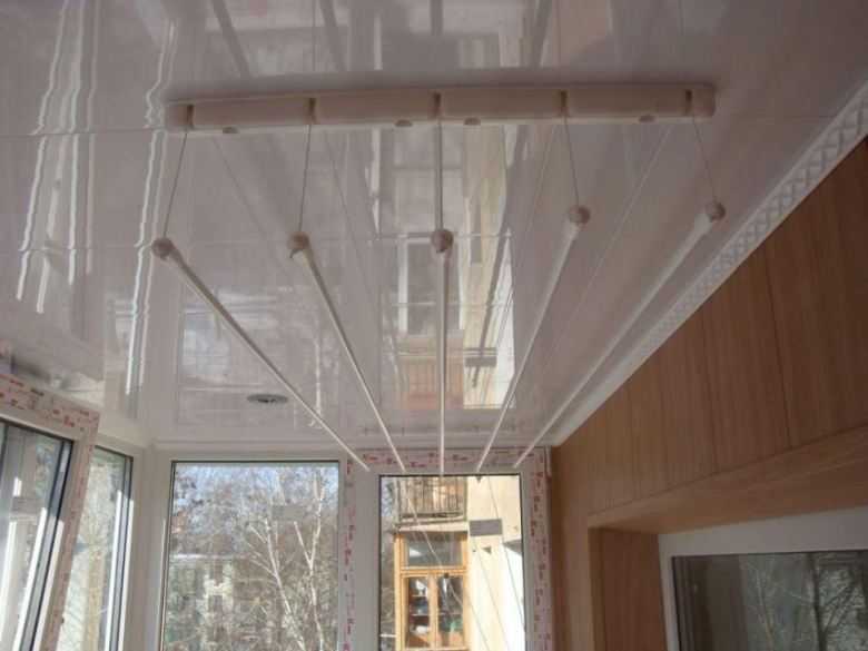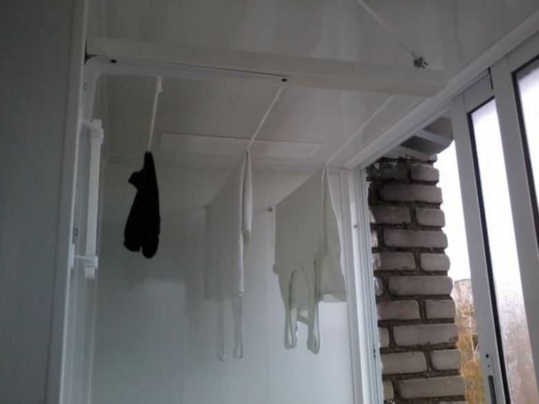 Для противников конструкции подвесного потолка были придуманы балконные вешалки, которые можно снимать с крючков, когда белье высохнет.