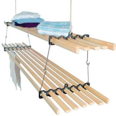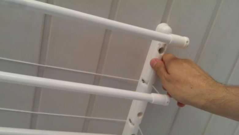 - благодаря регулировке по высоте можно влиять на скорость высыхания необходимой одежды — одежда, придвинутая ближе к потолку, обычно сохнет быстрее;