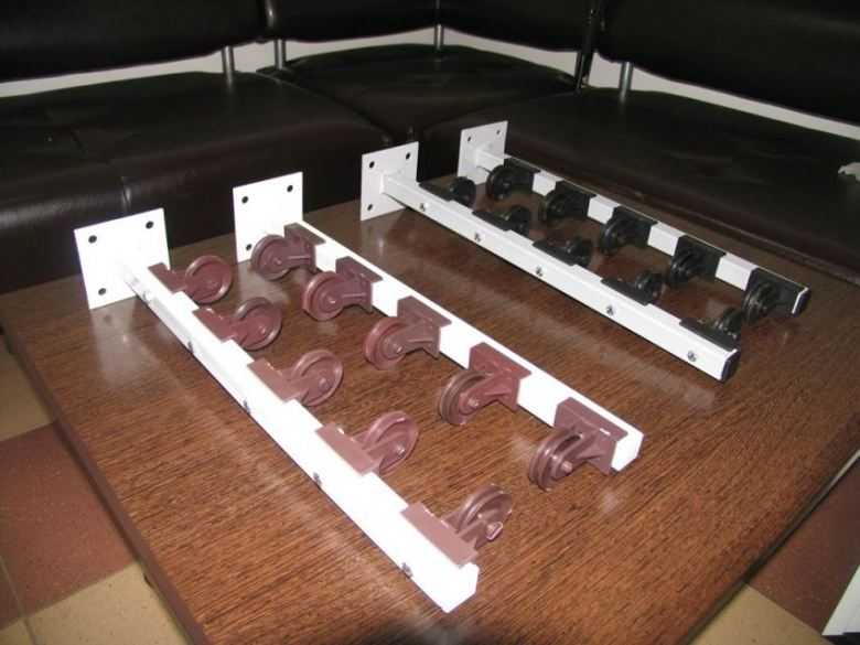 В раздвижном варианте всего две части, и они крепятся к потолку на нужном расстоянии друг от друга. В одной из этих частей тросы спрятаны, так что при необходимости тросы подтягиваются ко второй части и фиксируются на ней специальными креплениями.