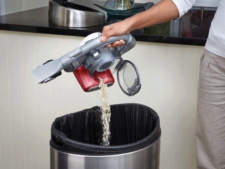 Ручные пылесосы доступны как с классическими мешочными пылесборниками, так и с пластиковыми контейнерами, интегрированными с циклонным фильтром. Гораздо более распространен второй вариант: в пластиковой колбе порошок взбивается в плотный комок, и для работы достаточно вовремя опорожнить и ополоснуть емкость.