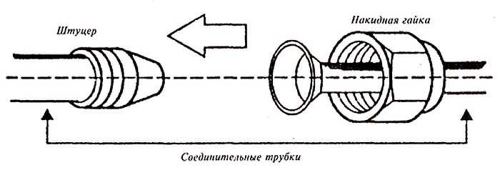 Соединяем развальцованный край трубы с соответствующим выходом, затягиваем гайку. Нет необходимости использовать дополнительные прокладки, герметики и тому подобное (запрещено). Для этого берут специальные качественные медные трубы, чтобы они обеспечивали герметичность без дополнительных средств.