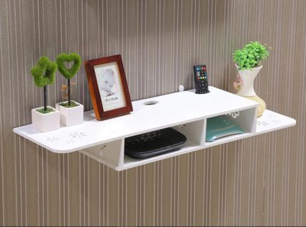 Полку рядом с кондиционером, в которой спрятана электрическая розетка, тоже можно использовать по прямому назначению, т.е.на нее можно поставить книги или статуэтки