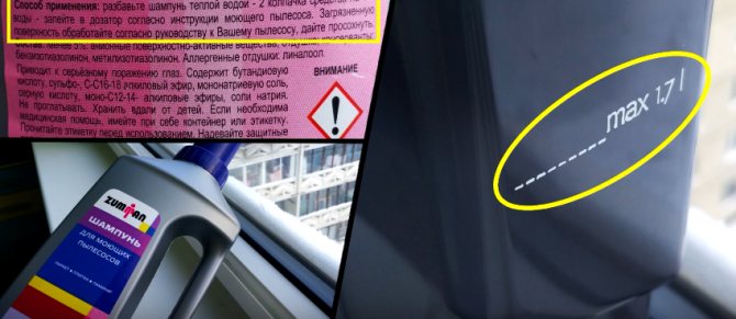 Если модель оснащена фильтрующими элементами, необходимо добавить в бак для сбора грязной воды пеногаситель для пылесоса. Конечно, перед началом работы все фильтры необходимо предварительно очистить, просушить и установить в отведенных для них местах.