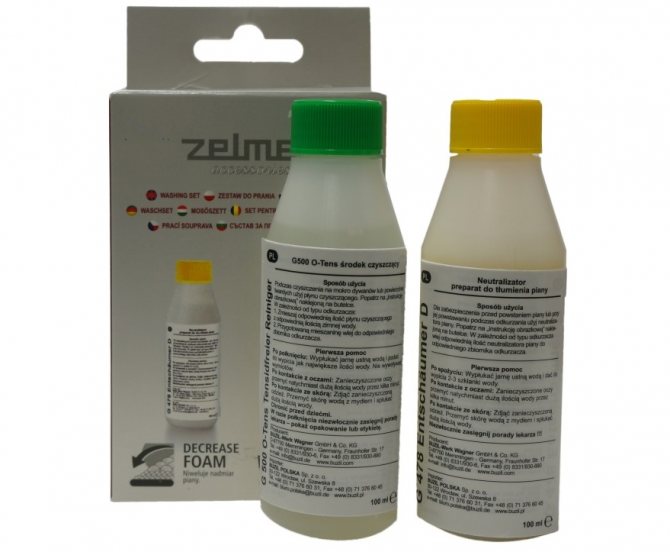 При выборе шампуня следует отдавать предпочтение жидкостям с уменьшенной пеной или приобретать пеногаситель. Этот концентрированный продукт препятствует образованию пены внутри стиральной машины.