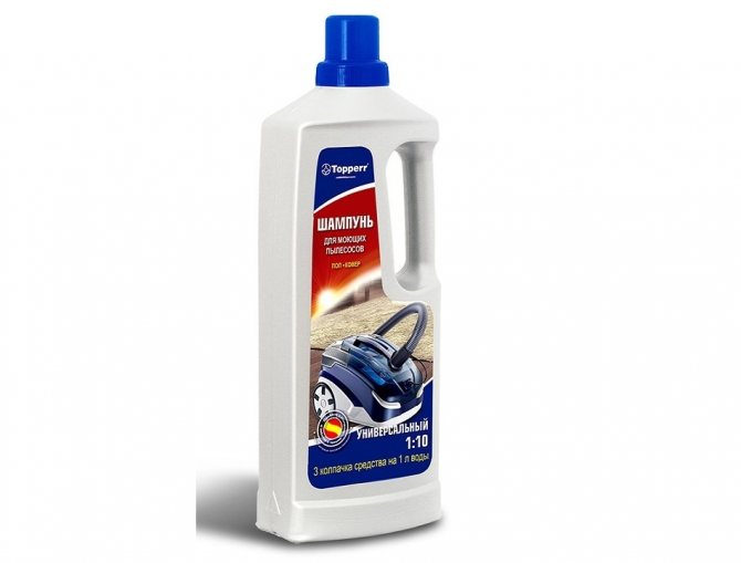 Производители позаботились о потребностях потребителей. Выпускают универсальные и специальные моющие средства для мытья пылесоса. Универсальные составы демонстрируют средние качества. При работе с коврами и обивочными тканями они показывают скромные результаты, но хорошо справляются с неустойчивыми загрязнениями при ежедневной уборке, уборке салона автомобиля.