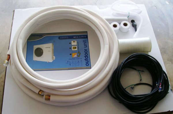 - Кондиционер с охлаждающими соединениями между двумя агрегатами, обычно длиной 10 м. Если агрегаты будут устанавливаться дальше, необходимо будет заказать соединительную трубу необходимой длины. Специалисты советуют избегать использования нескольких частей соединенных труб, которые увеличивают риск утечки.