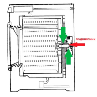 Место крепления подшипника к барабану может деформироваться так, что потребуется замена не только подшипника, но и всего барабана.